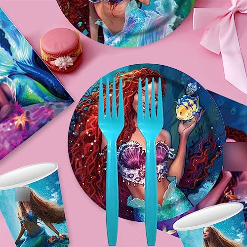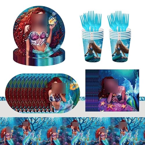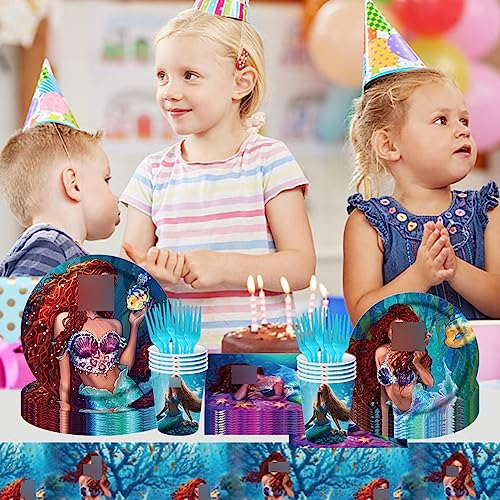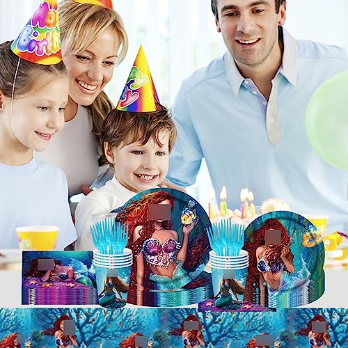 Kit Stoviglie Sirena, 61 Pezzi Stoviglie per Feste a Sirena Decorazione Compleanno Sirena, Decorazione da Tavola a Sirena, Set Stoviglie Compleanno Sirena, Compreso Tovaglie Piatti Tazze Tovaglioli