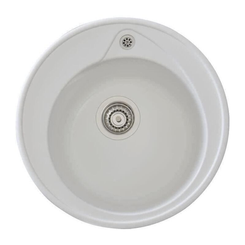 Lavello da incasso RONDA 1 vasca SMC, finitura BIANCO UNI - 17, dim. Ø 49 cm, non perforato, Ø tappo 90, fornito con scarico cestello, scarico manuale e sifone, imballo scatola