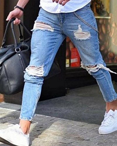 Strappati Skinny Jeans A Vita Bassa da Uomo Comfort Stretti Pantalone da Denim Slim Stretch Azzurro Chiaro 2XL