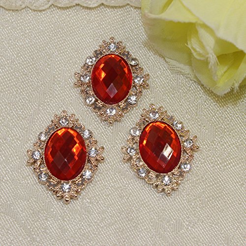 Set di 10 strass a bottone, decorazioni per cover iPhone, capelli o indumenti, 25 x 30 mm rosso
