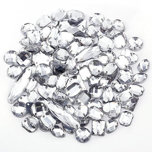 100 strass, pietre preziose, pietre in acrilico con strass, pietre da cucire, cucitura decorativa per abbigliamento, tasche, decorativo