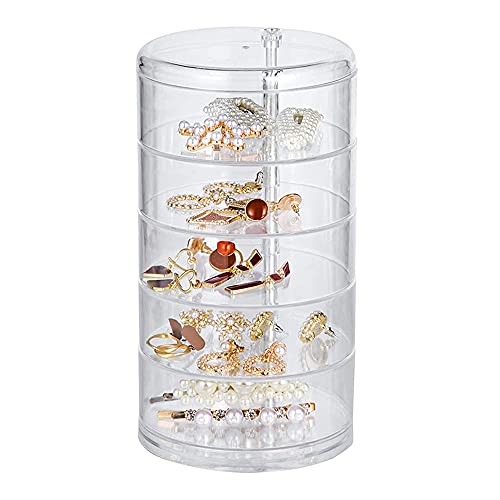 5 Strati Portagioie, Portagioie Rotondo, Piccolo Portagioie, Organizer Gioielli Rotondo, Portagioie Rotante a 360 Grad, Organizzatore di Gioielli Trasparente per Collane, Braccialetti, Squillare