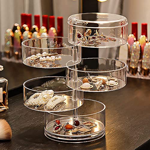 [360 Rotazione Libera]: Organizzatore di gioielli a 5 livelli con design di rotazione a 360 gradi, facile da inserire o togliere gli accessori. Ogni strato può essere rimosso separatamente senza essere disturbato.
