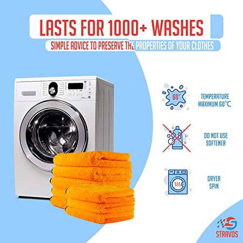 Eccellenti Qualità Assorbenti: resa da autolavaggio con panni micro fibra di Stravos, Ad Alto Grado Di Assorbimento, morbidi e non abrasivi a doppia faccia, ideali come panno microfibra auto, moto per un lavaggio, ceratura e asciugatura di vetri, parabrezza, carrozzeria e interni senza graffi, aloni e senza lasciare pelucchi. Assorbe oltre 5 volte il suo peso e si asciuga 3 volte più velocemente di strofinacci di lino cotone sintetico.