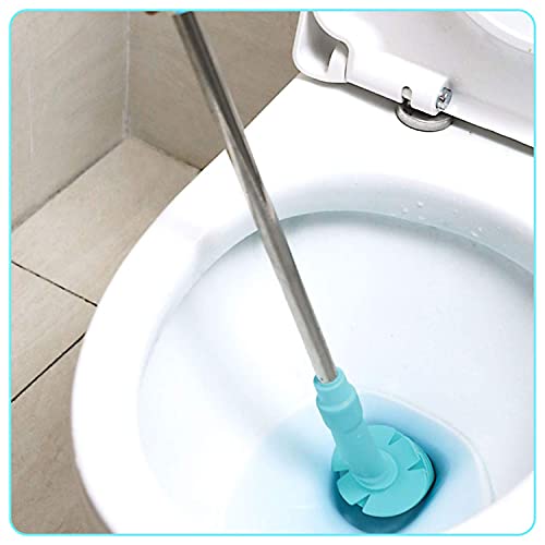 STRAWBLEAG WC efficiente, a pistone, 72 cm di Lunghezza, Flessibile, in Gomma, con Manico in Acciaio Inox, Colore: Blu