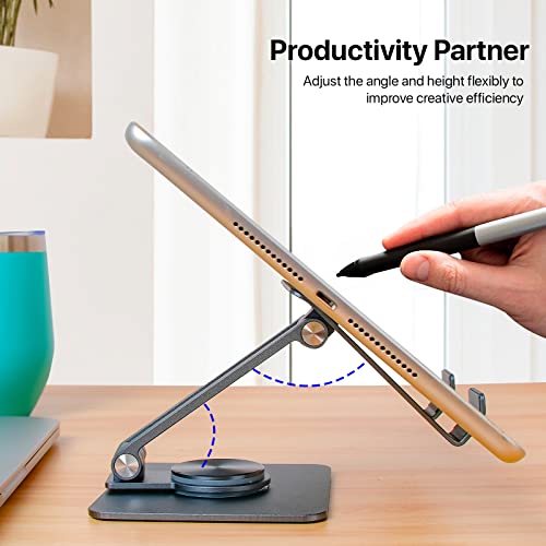 STRBDYI Supporto tablet in lega di alluminio girevole a 360°, regolabile in angolazione e pieghevole per iPad Pro/Air/Mini, telefoni cellulari, Huawei, Surface fino a 12,9 inch