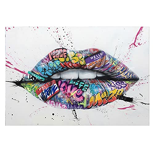 Street Art Banksy Graffiti Wall Art Denti Labbra Dipinti su tela Immagini di arte della parete per la decorazione domestica Pittura,70x100cm No Frame