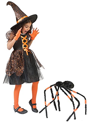 Strega Glenda Costume per ragazza nero arancione con stelle - Dolce Halloween Costume con vestito e cappello nero / arancione 4 anni