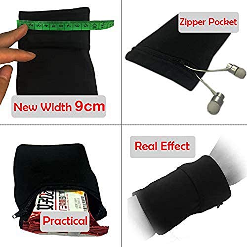Stretchy Wrist Wallet Wristband with Zipper Stretchy Sport Running Gym Wrist Pocket Pouch Sweatband Wrist Bag Holder for Mobile Phone, Cards