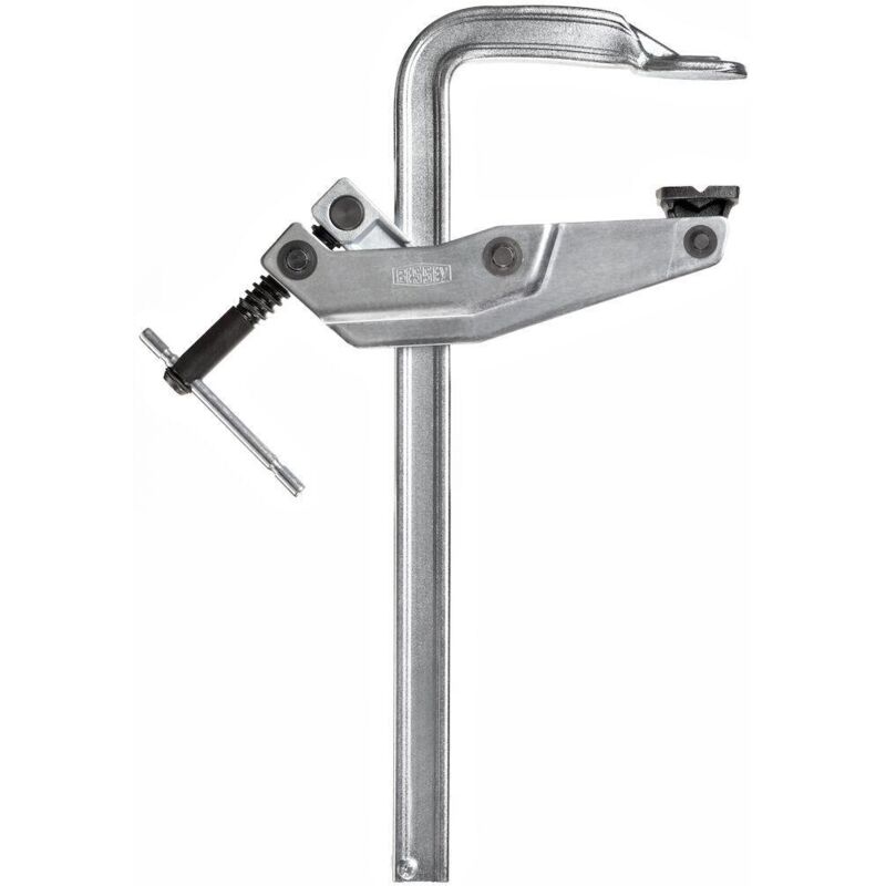 Arco fisso in acciaio lucido trafilato (profilato speciale), zincato galvanicamente. Arco scorrevole in acciaio con asta a filettatura trapezoidale e piattello di pressione inclinabile fino a 30°. Invertendo l'arco scorrevole lo strettoio può essere utilizzato per lavori di espansione (pressione verso l'esterno). Uso: Pressione di serraggio massima fino a ca. 7500 N. Dati tecnici Tipo di prodotto Strettoio Profondità arco, mm 120 Apertura, mm 600 Sezione trasversale della guida, mm 28×11 Peso, kg 3,1