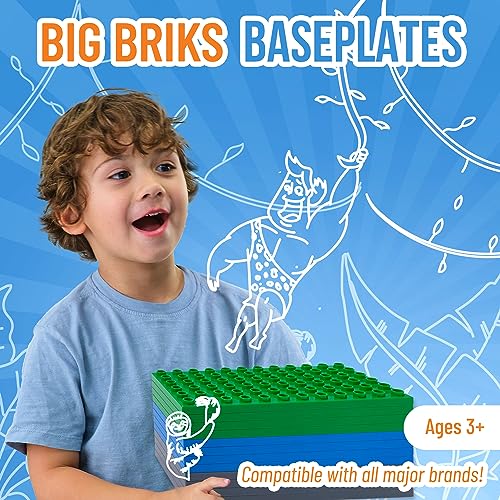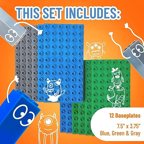 Strictly Briks Set da 12 basi per Costruzioni - compatibili con Tutte Le Principali Marche - Solo per mattoncini pioli Grandi - 19 x 9,5 cm - Blu, Grigio e Verde
