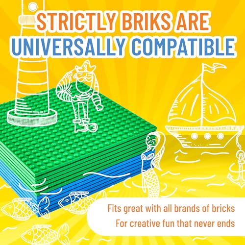 Strictly Briks - set da 12 basi per costruzioni - compatibili con tutte le principali marche - 15,2 x 15,2 cm - verde, blu