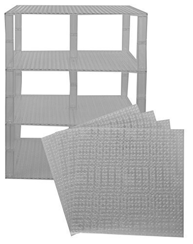 Questo set include 4 piatti trasparenti impilabili che misurano 25,4 x 25,4 cm, insieme a 30 impilatori nuovi e migliorati.