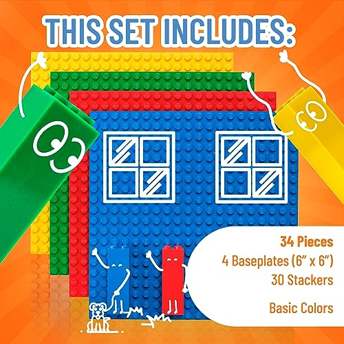 Strictly Briks Set per Costruzione Torre - Include 4 basi da 15,2 x 15,2 cm e 30 pilastri 2x2 - compatibili con Tutte Le Principali Marche - Giallo, Rosso, Verde, Blu
