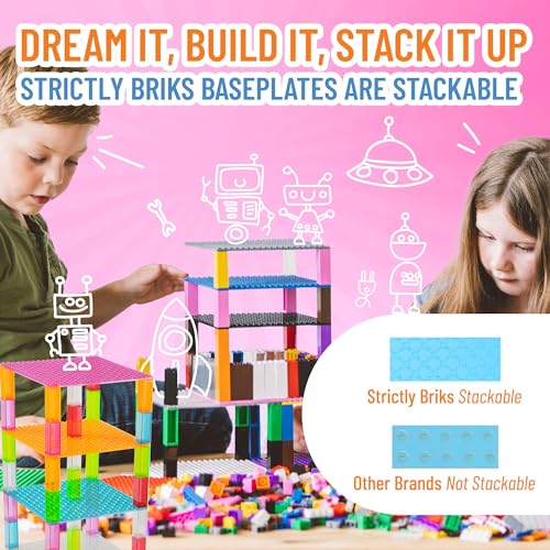 Strictly Briks Set per costruzione torre - include 6 basi da 15,2 x 15,2 cm e pilastri 2x2 - compatibili con tutte le principali marche - blu, trasparente, verde, magenta, arancione e rosso