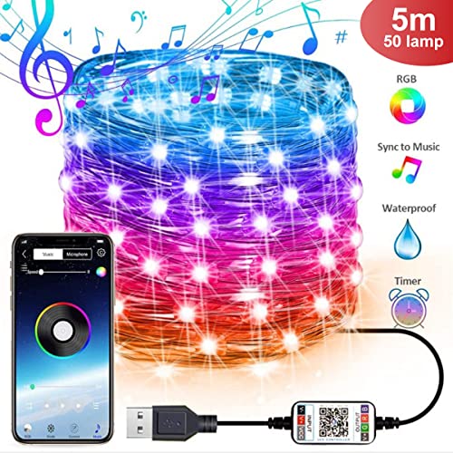 USB String Lights con telecomando e adattatore di alimentazione, Luci LED della stringa RGB per camera da letto parete Soffitto Albero di Natale Ghirlanda Mestiere Nozze Partito Decorazione (RGB, 5M)