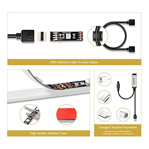 Stringa Flessibile illuminazione Striscia Led TV Backlight Retroilluminazione Luci decorative per auto pregiudizi striscia Alimentazione USB 20 Multi Color RGB Tape cambiare colore con 44 tasti Telecomando per 32 "a 60" TV e Monitor PC, Laptop,Desktop PC,Esterni,Ridurre l' Affaticamento Degli occhi e Aumentare Immagine Chiarezza Romantico Decorazione domestica