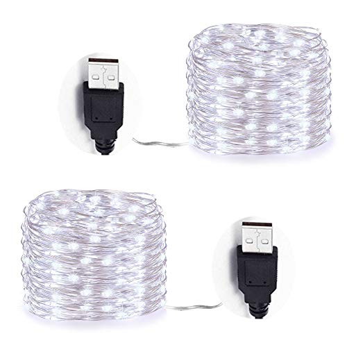 Stringa Luci Led, [2pack] 10M 100 LEDs Filo di Rame Catene Luminose USB Impermeabile Illuminazione, per il partito, Natale, Vacanza, Decorazione della camera, Decorazione di nozze (Bianco freddo)
