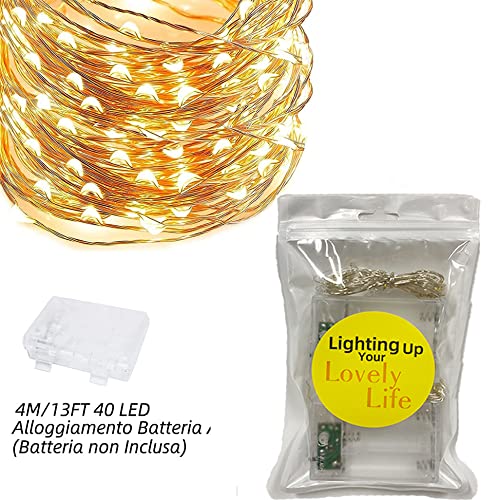 LED Stringa Luci a Batteria, AISOO 4M 40 LED Impermeabile Filo di Rame Luci Natale Fata Catena Luci di Esterno e Interno per Camere Letto Giardino Casa Feste Natale Matrimonio Patio Barbecue, 2 Pezzi