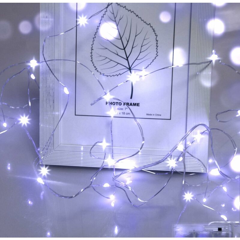 Batterie da 2 m con 20 LED bianco freddo, confezione da 20 unità. A basso wattaggio, questa piccola ghirlanda luminosa non produce calore, senza alcun pericolo per i bambini. 【Facile da usare】→ basta attivare il pulsante di accensione/spegnimento e tutto si accende. Funzionano con due batterie a bottone CR2032 (incluse). La durata della batteria è fino a 48+ ore;