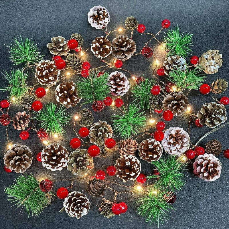 Luci a catena da 7 piedi a batteria - : le luci a stringa di Natale da 7 piedi con 20 luci sono alimentate da 3 batterie AA, quindi non devi preoccuparti dei cavi e di dove collegarli. E le luci a LED sono efficienti dal punto di vista energetico, quindi la batteria durerebbe almeno 8 ore * 7 giorni.^ Ghirlanda di pino natalizioë l Con 【Luci bianche calde】: ogni pezzo di questa ghirlanda è stato accuratamente assemblato con 20 luci/mais di pino/bacche rosse/campane .Le luci sono di un bianco caldo, che aggiungerebbe un caldo tocco festivo alla tua casa! Le luci sono molto luminose e di lunga durata! ^ Modella la ghirlanda come desideri】 La ghirlanda è fatta di filo di rame, è è quindi facile da formare e riporre in una semplice cornice, può essere utilizzato tee in diversi modi. Inoltre, la ghirlanda di filo di rame è più sicura perché non si riscalda.^ Ghirlanda di Natale per la decorazione di interni ed esterni】 Ghirlanda di fate per decorare la tua casa! Puoi posizionarlo ovunque.