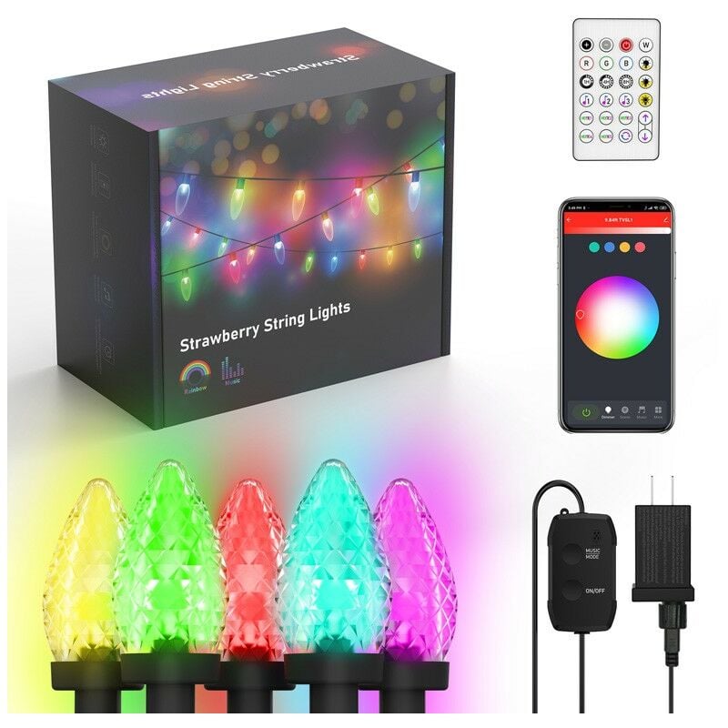 Tuya Smart WiFi Stringa con lampadine a goccia Strawberry da Esterno Vuoi divertirti e stupire tutti andare molto oltre un semplice proiettore luci Natale? Scopri queste luci per albero di Natale smart compatibili Alexa, Google Home, per decorare e colorare la tua casa con effetti incredibili comandati con lo smartphone e la tua voce. Luce d'atmosfera perfetta Questa illuminazione d'atmosfera impermeabile ha LED RGBIC premium con controlli dimmer e luminosità . Fornisce 16 milioni di colori e la luminosità e la saturazione del colore possono essere modificate. Ci sono diverse scene che soddisfano le tue diverse esigenze. Controlla le tue Luci da Giardino Comodamente Usa l'app Tuya Smart o Smart Life per accedere a una selezione di effetti di luce che meglio si adattano alla tua casa . Che si tratti di vacanze o di un cambiamento di scenario, illuminate il vostro prato con una varietà di effetti scenici colorati. Controlla l'illuminazione del tuo giardino da remoto tramite il tuo