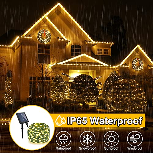 Stringa di Luci Solari per Esterni 22M 200 LED Luci di Stringa per Albero di Natale 8 Modalità IP65 Luci di Stringa di Natale per Esterni Impermeabili per Feste Natale Ggiardino (Cavo Verde)