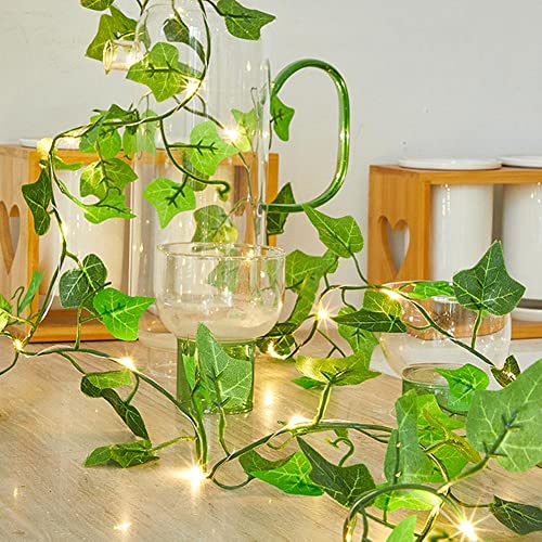Stringa di luci solari a Forma di Foglia di edera Artificiale, 5m 50LED, con Foglie d'Acero Ghirlanda di Piante rampicanti, Decorazioni per Natale, Matrimoni, Feste, Esterni Decorazioni da Giardino