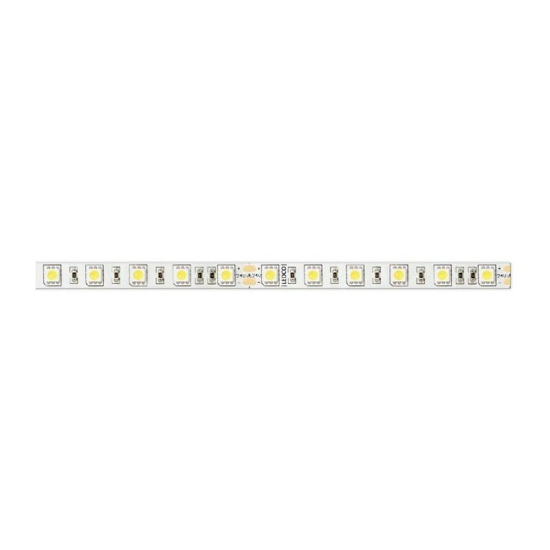 Strip flessibile per illuminazione lineare con LED monocromatico, bobina da 5 metri Sezionabile ad interassi prefissati ogni 10 cm Nelle versioni IP65 utilizziamo un rivestimento protettivo in elastomero siliconico termo-dissipante con finitura diffondente (allunga la vita della strip all'esterno mantenendola trasparente e morbida nel tempo) Nastro adesivo 3M sul retro La doppia intestazione dei cavi permette una connessione in serie piu' rapida Chip con 3 Step MacAdam