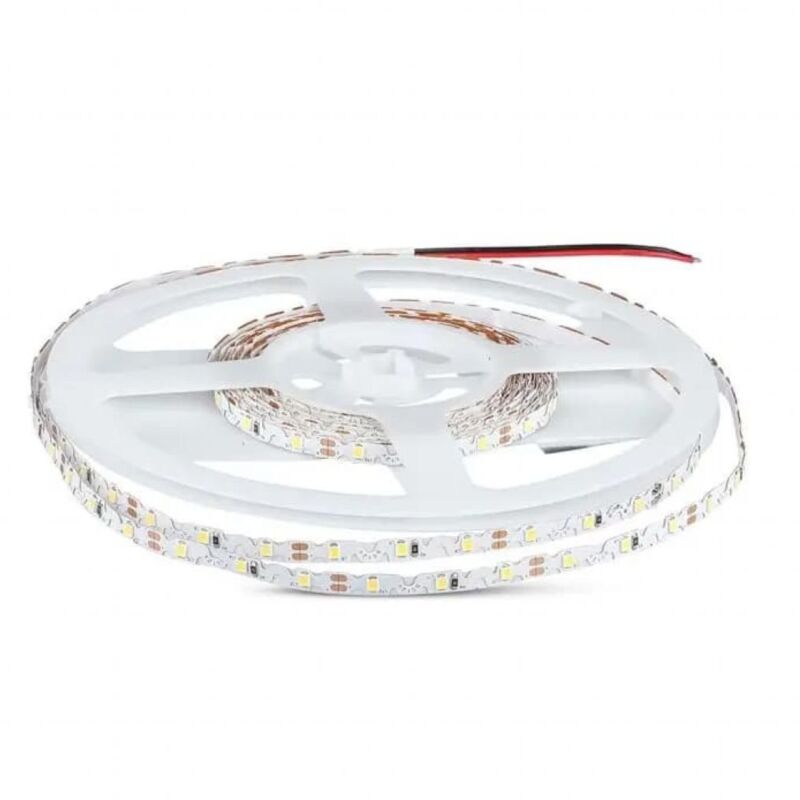 La striscia è composta da 60 LED per metro, dispone di un fascio luminoso di 120° mentre il flusso luminoso è di circa 7 lm per LED. Ha una potenza di 4,2W al metro ed un rapporto di 84 lm/W. La striscia ha un grado di protezione IP20 e non è impermeabile. Tramite i cavi a saldare può essere facilmente connessa all'alimentatore o ad un'altra striscia LED. Nella confezione è presente anche un connettore a 2 poli per collegare 2 strisce LED in modo ancora più semplice. E' divisibile ogni 3 led ed è dotata di striscia adesiva sul retro. Tipo di led SMD2835 Durata 20000 ore Potenza 4,2W / metro Tensione 12 Vdc Angolo di illuminazione 120° Colore dell luce Bianco freddo Temperatura di colore 6500K Flusso luminoso 420 lm / metro Numero di led 60 / metro Indice di resa cromatica >80 Materiale PCB Valutazione IP IP20 Divisibile Ogni 3 LED, lungo i segni di taglio Numero di cicli On/Off 15000 Larghezza 8 mm Classe di efficienza energetica F EAN 3800157676304 Modello 212561 VT-2835 Marca V-TAC
