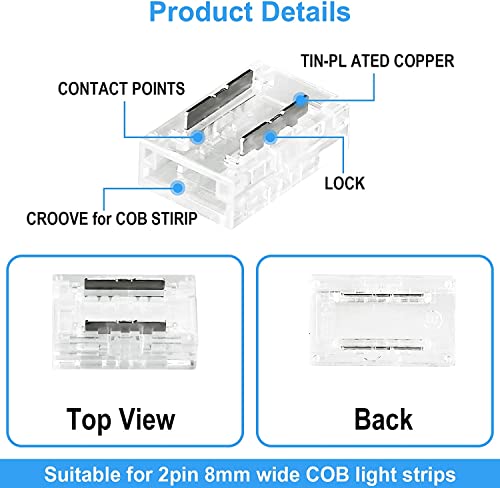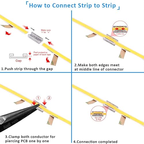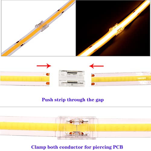 CONNESSIONE RAPIDA】Collega le strisce COB High Density Light alle strisce senza togliere l'isolamento e senza saldare. Compatibile solo con strisce COB LED di 10 mm di larghezza, non applicabile ad altre dimensioni.