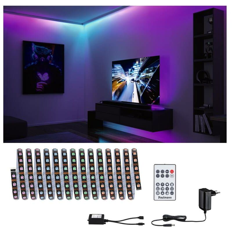 Stripe Entertaned Stripe Dynamic RGB 5M 10.5W 60leds/M RGB+ 15VA La striscia a LED set RGB arcobaleno dinamico in lunghezza di 5 m crea un ambiente speciale nell'intrattenimento domestico e nell'area di gioco. Con il suo gioco piacevolmente, silenziosamente che cambia dinamico di colori, possono essere impostati accenti di illuminazione efficaci. Il comodo controllo tramite telecomando a infrarossi consente la configurazione della luce di un bambino di innumerevoli gradienti e velocità di colore. I componenti molto piccoli possono essere plug & amp senza strumenti;
