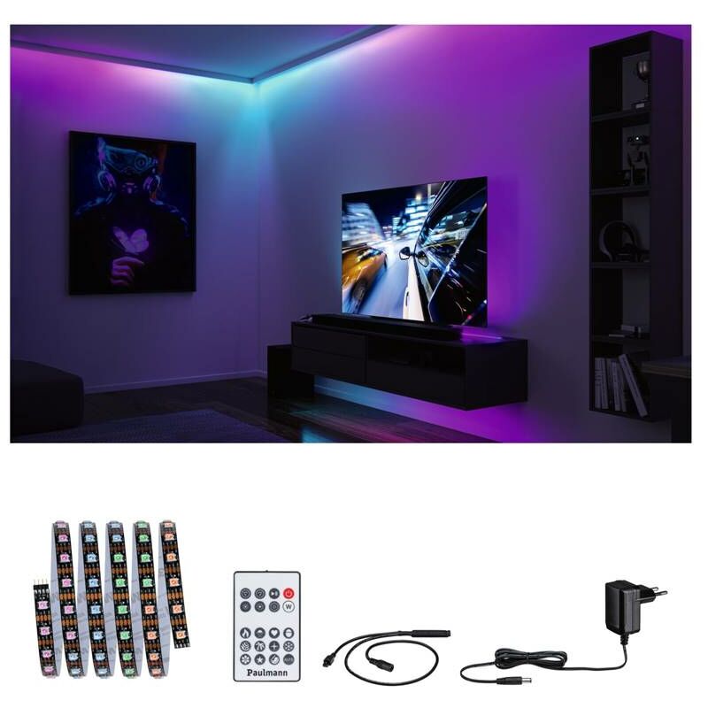 Stripe Entertaned Stripe Dynamic RGB 1,5 m 3W 60leds/M RGB+ 5VA La striscia a LED set RGB arcobaleno dinamica in lunghezza di 1,5 m crea un ambiente speciale nell'intrattenimento domestico e nell'area di gioco. Con il suo gioco piacevolmente, silenziosamente che cambia dinamico di colori, possono essere impostati accenti di illuminazione efficaci. Il comodo controllo tramite telecomando a infrarossi consente la configurazione della luce di un bambino di innumerevoli gradienti e velocità di colore. I componenti molto piccoli possono essere plug & amp senza strumenti;