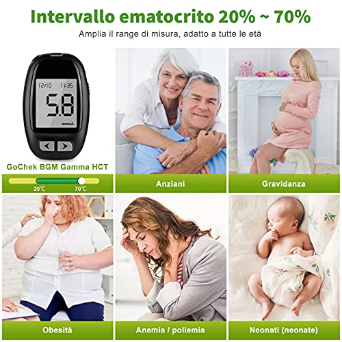 La correzione automatica dell'ematocrito e un algoritmo avanzato forniscono precisione su un'ampia gamma di ematocrito, dal 20% al 70%