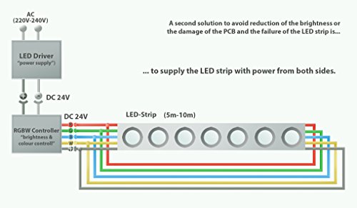 Striscia al LED professionale con colori RGB + bianco caldo in un chip, 24 V DC, IP65 (impermeabile), rotolo da 5 m, larghezza 10 mm.
