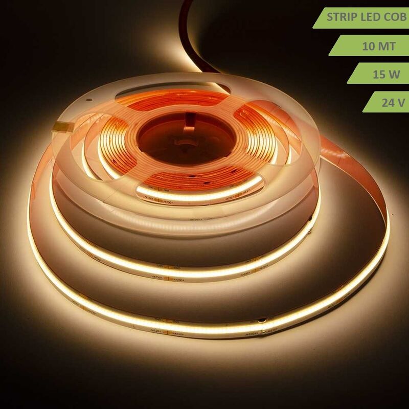 Striscia led dotata di illuminazione cob che permette di creare una luce continua e omogenea evitando l'antiestetico effetto puntinato dei led. Questa combinata alla tensione di ingresso di 24V evitano il surriscaldamento della strip rendendola più duratura nel tempo Prodotto professionale di alta luminosità, dimmerabile e facile da installare poiché munita di adesivo. Caratteristiche Tipo di led cob Potenza / mt 15w Tensione di uscita 24V Dimmerabile si Flusso luminoso / mt 1500lm Fascio luminoso 180° Taglio (lungo i segni di taglio) ogni 4,5cm Grado di protezione IP20 Tempo di innesco 0.1 secondi Dimensioni Lunghezza 10mt Larghezza 10mm Luce disponibile Fredda bianca 6500k Naturale 4000k Calda 3000k