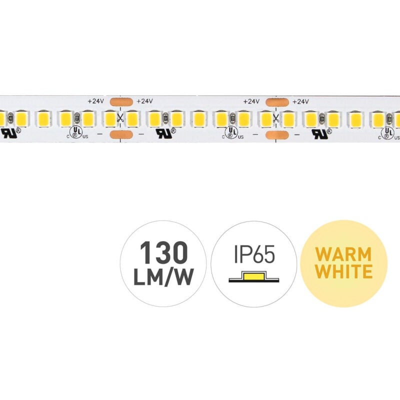 Led de de INNOVA led led de serie HE105096 deLED strip con riproduzione del colore 80+ Alta potenza: 19,2W per metro Efficienza luminosa 130Lm / W LED SMD2835 Samsung S2 SPECIFICHE TECNICHE: Potenza 19.2W/m - 96W i 5 metri. Led 210LED/metro - 1050Leds los 5 metri Temperatura di colore de 3000K -- Luce calda - Luce calda Chip SMD2835 Flusso 2500 lm/m Lunghezza striscia di 5 metri Tensione 24Vdc Altezza 2mm Larghezza 10,5 mm Taglio ogni 5 centimetri Protezione IP20 Angolo di 120° IRC >80 Regolabile Si consiglia che le installazioni con striscia de led de 24V non superino le distanze de mas de 10 metri alimentati un'estremità, o 20 metri alimentati entrambe le estremità. Per garantire buone prestazioni del led e la vita utile è consigliabile installare la striscia sulla una superficie que dissipazione del calore, abbiamo de una ampia gamma de profili de alluminio per l'installazione de strisce de led.