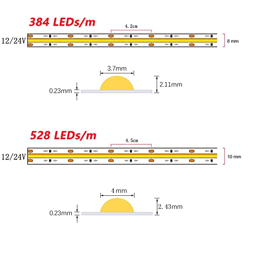 Applicazione: 24 V COB LED Strip Lights cena kit luminoso, 384 LED / M o 528 LED/M per camera da letto interna, sala da pranzo, cucina, retroilluminazione, giardino, illuminazione per feste, risparmio energetico e sicuro da usare.