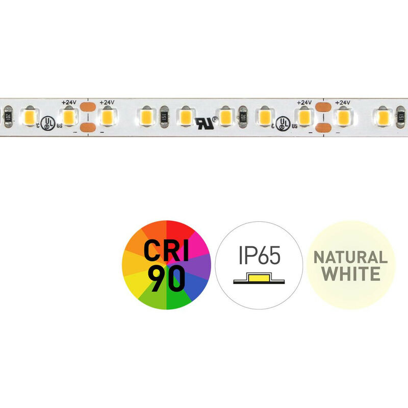 Striscia LED con eccellente resa cromatica: Ra +90 La larghezza di 8 mm si adatta alla maggior parte dei profili Efficienza luminosa 100lm/W Dimmerabile / Dimmerabile SPECIFICHE TECNICHE: Potenza 9,6W/m - 48W su 5 metri LED 120LED/m - 600LED su 5 metri Temperatura di colore 4000K - Luce neutra - Luce naturale Chip SMD2835 Flusso 960 lm/m Lunghezza striscia 5 metri Tensione 24Vdc Altezza 2 mm Larghezza 8,5 mm Taglio ogni 5 centimetri Protezione IP65 Angolo di 120° CRI >90 Dimmerabile È consigliabile che le installazioni con strisce LED a 12 V non superino distanze superiori a 5 metri alimentate da un'estremità o a 10 metri alimentate da entrambe le estremità. Per garantire buone prestazioni e una buona durata dei LED, è consigliabile installare la striscia su una superficie che dissipi il calore;