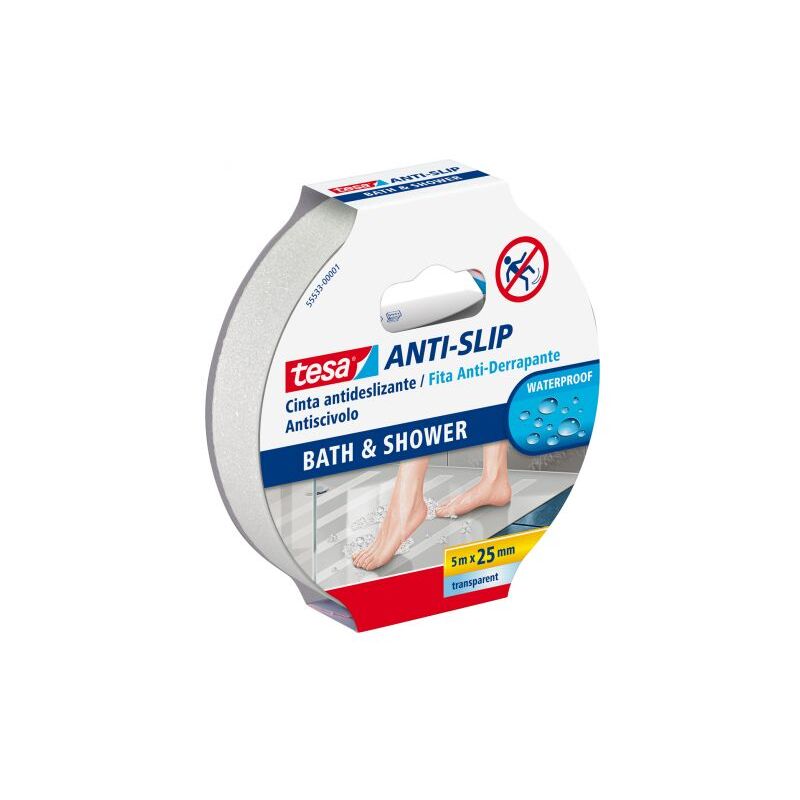 NASTRO TESA Nastro tesa antiscivolo trasparente impermeabile mt 5x25 mm per doccia e bagno.