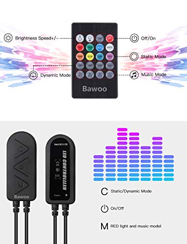 Striscia LED Auto con APP Bawoo Bluetooth LED Auto Interni 48 Led Auto Strisce Musica Attivata dal Microfono Vari Colori Controllo APP USB Interna Striscia Auto Fasce luminose Auto Nastri Telecomando