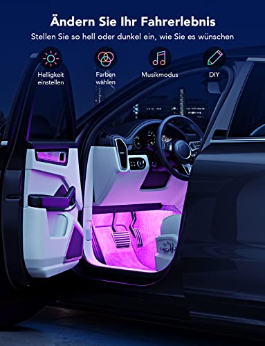 Striscia LED Auto con APP, Govee Luci LED Interne per Auto con 48 LEDs 9 Colori Multicolore Impermeabile, Musica sotto il cruscotto Kit di illuminazione, Controllo APP, DC 12V