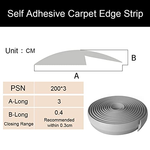 Striscia autoadesiva per moquette, 2 m, in PVC, per pavimenti e porte, striscia di transizione per piastrelle, legno, laminato, giunture (spessore