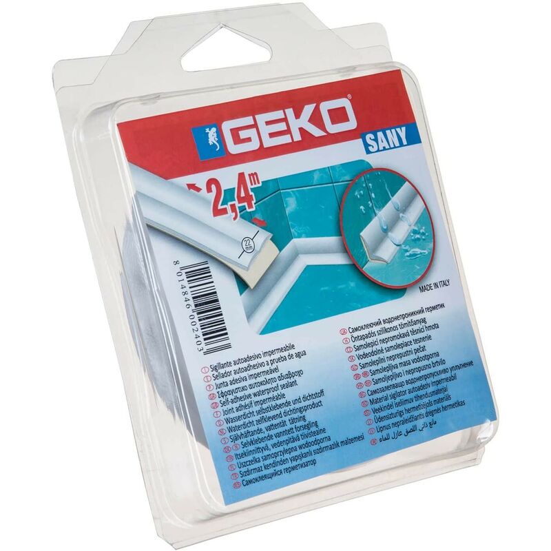 Geko Guarnizione Bordo Per Sanitari 22mm - 2,4 mt Bianco Nastro sigillante per sanitari. Lunghezza: 2,4 metri circa. Usato principalmente come impermeabilizzante e guarnizione nella stanza da bagno. Nastro sigillante raccomandato come guarnizione per lavandini, vasche, top etc. Questo nastro è una soluzione eccellente per proteggere da infiltrazioni d'acqua, per sanitari nuovi o preesistenti.Il nastro copre la fessura o la giunzione presente tra sanitari e parete.