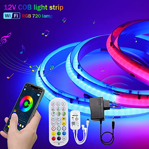 Striscia LED COB indirizzabile RGB WS2811 IC 12V con controllo APP musicale Bluetooth 5050 LED Pixel Rope Light, 720 LEDs/M Striscia LED tagliabile CRI 90+, adatta per feste fai da te[3M|RGB]