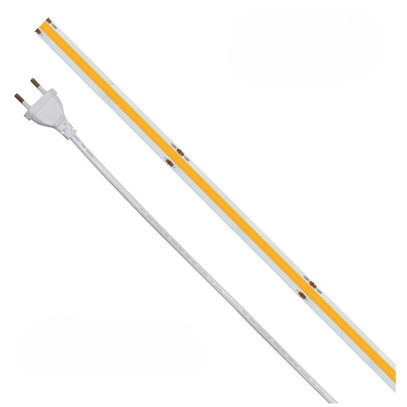 Striscia a led cob 20m monocromatica a tinta unica da 14watt/metro, collegamento diretto a 220V. Ottima luminosità. La striscia a led cob colorata è una striscia a led di nuova generazione permette, infatti, di avere una linea unica di luce, eliminando i "puntini" che alla vista risultano fastidiosi. La striscia a led cob colorata è disponibile in tre colorazioni di luce: Striscia a led cob a luce calda (3000K), striscia a led cob a luce naturale (4000K) e striscia a led a luce fredda (6000K). Questa striscia a led ha un angolo di apertura della luce grazie al quale è possibile avere una luce a 180°, con un fascio abbastanza diffuso. Dove posso posizionare la mia striscia a led colorata da 14W/mt? È una striscia a led da 14 w/mt adatta per ogni tipo di applicazione interna od esterna. Questa striscia a led con grado di protezione IP65 è pieghevole e può essere utilizzata per illuminare ambienti residenziali o lavorativi, inoltre viene anche utilizzata per fare illuminazioni in