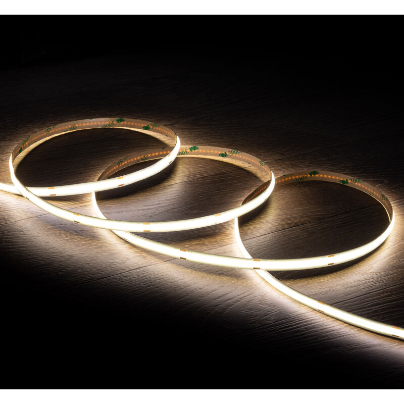 La Striscia LED COB 24V DC 320 LED/m 5m IP20 CRI90 Expert Color Larghezza 8mm Taglio ogni10cm è una scelta molto popolare se si vuole avere una luce decorativa che consuma poca energia. Il suo design flessibile si adatta a qualsiasi luogo dove aggiungerà un tocco di colore. Caratteristiche della Striscia LED COB 24V DC 320 LED/m 5m IP20 CRI90 Expert Color Larghezza 8mm Taglio ogni10cm Questa striscia LED COB 24V DC 320 LED/m 5m IP20 CRI90 ha una lunghezza di 5 metri e integra 1600 LED con tecnologia COB ad alta efficienza che consumano solo 8W per metro. La luce è distribuita in modo uniforme e, grazie ai LED COB, si ottiene una maggiore resa in lm/W a parità di potenza rispetto ai tradizionali LED SMD. La larghezza della striscia LED COB è di 8 mm, quindi può essere installata in quasi tutti gli angoli della casa. Per funzionare richiede un'alimentazione elettrica. Vale la pena di notare che questa striscia ha un indice di resa cromatica (CRI) molto elevato, pari a 90, per cui i
