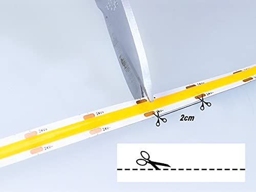 Striscia Led COB 24V 5 Metri,10W/M 120LM/W 1200LM/M,CRI>90 IP20,Tagliabile Ogni 5cm (Bianco Caldo 2700K)
