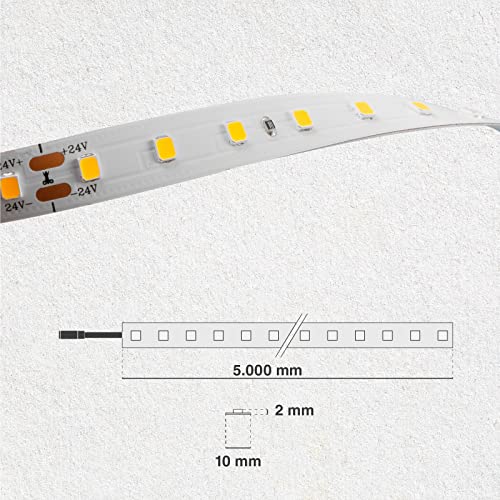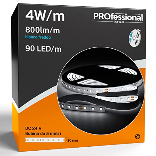 Striscia LED SMD 5 metri Professionale 24V 20W 4 W/mt - Striscia Monocolore da 90 LED/mt e 800 Lm/mt per un Totale di 4000 Lm con Rapporto 200 lm/W - Luce Bianco Freddo 6500K