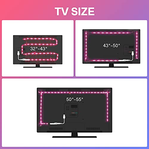 Striscia LED USB 2 Metri, Tasmor Dream Color Retroilluminazione LED RGB+IC per TV con Telecomando e Controllo APP, 213 Modalità 16 Milioni Luci LED Colori DIY per Televisore e Monitor da 32-55 Pollici